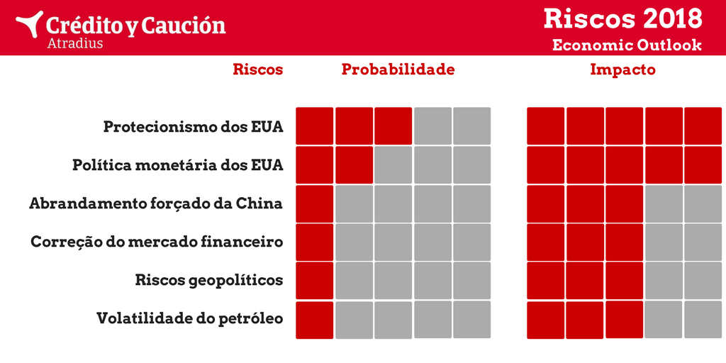 De acordo com o mais recente Economic Outlook divulgado pela Crédito y Caución, a evolução do protecionismo dos Estados Unidos rumo a uma guerra comercial é, claramente, o maior risco que ameaçará a robustez do crescimento e do comércio global em 2018. “Não estamos convencidos de que os EUA vão realmente seguir com uma agenda protecionista”, refere o relatório, mas se esse cenário se concretizar "seria o colapso do crescimento do comércio.”