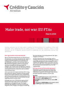O crescente protecionismo dos Estados Unidos está a pressionar a União Europeia (EU) a acelerar a conclusão das negociações de vários acordos de livre comércio com os principais parceiros comerciais. Esta é a conclusão do mais recente relatório divulgado pela Crédito y Caución, a principal seguradora de crédito na Península Ibérica, que analisa a situação das cinco negociações pendentes que poderiam ser resolvidas em 2018.