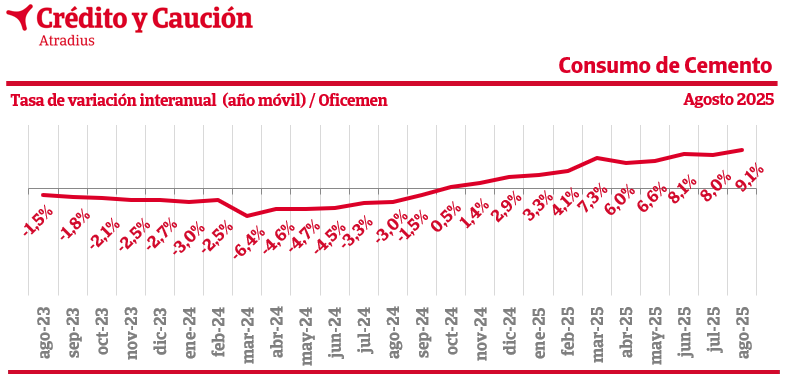Los datos de evolución de consumo de cemento son difundidos cada mes en los informes estadísticos de avance nacional que publica la Agrupación de Fabricantes de Cemento de España (Oficemen).