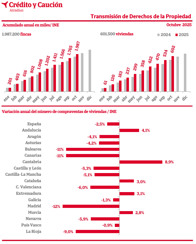 19 de enero 2026, datos revisados hasta noviembre de 2025 de la Estadística de Transmisión de Derechos de la Propiedad, (INE).
