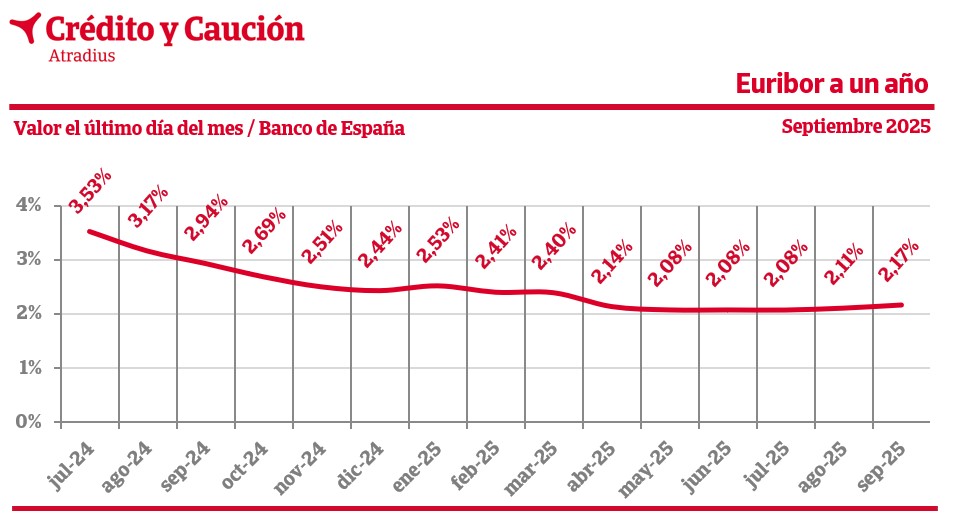 El Banco de España confirma que el Euríbor a 12 meses, referencia en la mayoría de préstamos hipotecarios a tipo variable en España, subió en septiembre al 2,172%.