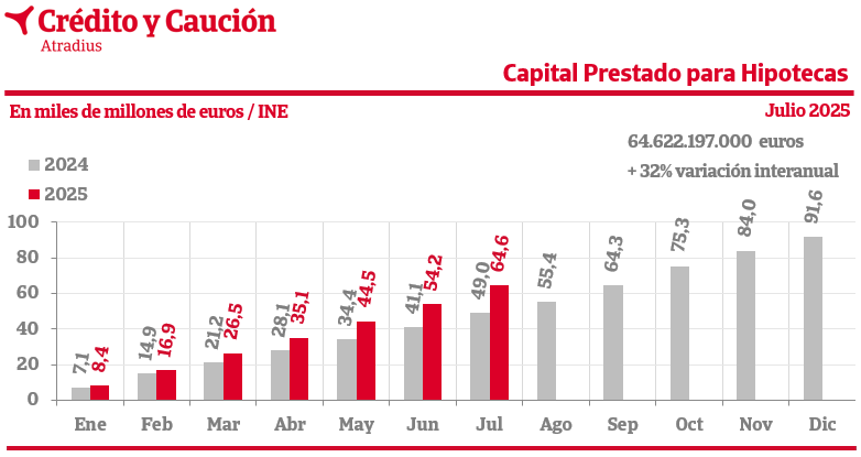 23 de octubre 2025, datos hasta agosto de 2025 de la Estadística de Hipotecas, (INE).