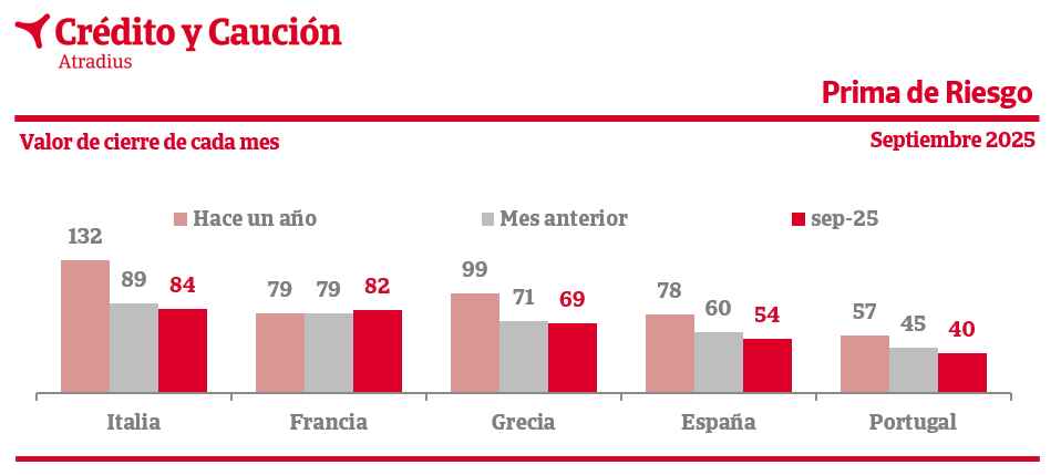 La prima de riesgo puede ser facilmente calculada a partir de la observación del mercado secundario de deuda. La prima de riesgo toma como referencia los bonos a 10 años emitidos por Alemania, la economía percibida como la más segura de la zona euro, y mide el sobreprecio que alcanzan los bonos a 10 años de los otros países en los mercados secundarios de deuda, donde se intercambian libremente. El gráfico muestra la evolución de la prima de riesgo expresada en puntos porcentuales. Se trata, siempre, del valor al cierre de cada mes.