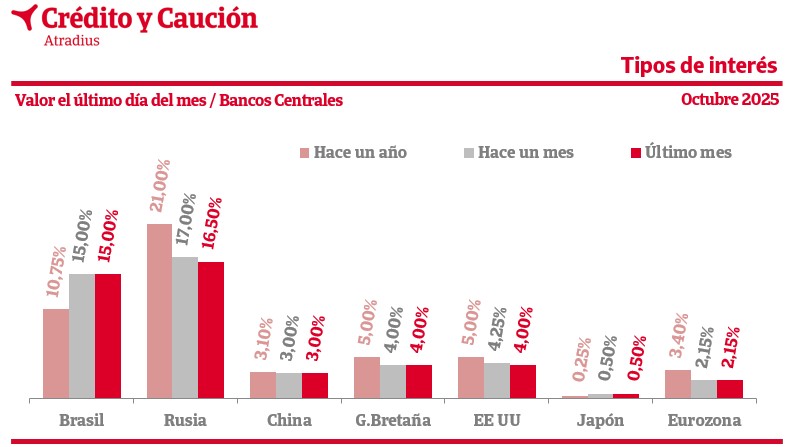 Los principales bancos centrales del mundo mantuvieron los tipos de interés de referencia en octubre, excepto Rusia.