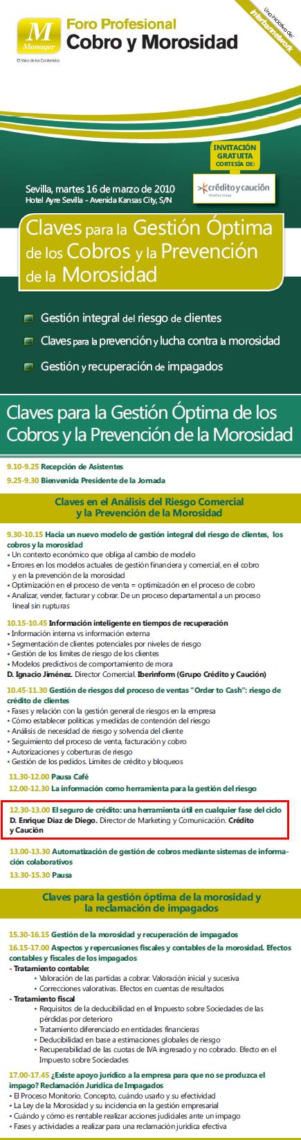 Matrícula: Gratuita [mediante la cumplimentación y envío vía fax del folleto anexo por cortesía de Crédito y Caución].