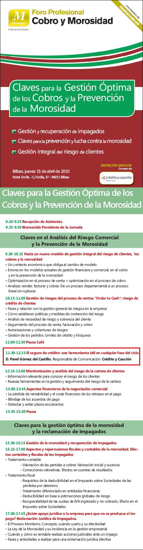 Foro Profesional de Cobro y Morosidad: `Claves para la Gestión Óptima de los Cobros y la Prevención de la Morosidad´