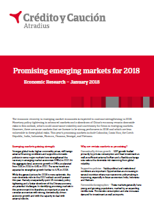 O endurecimento inesperado da política monetária dos Estados Unidos ou uma rápida desaceleração da economia chinesa poderiam gerar volatilidade e incerteza entre as empresas dos mercados emergentes em 2018. Esta é uma das principais advertências do mais recente estudo divulgado pela Crédito y Caución que, não obstante, prevê que, durante este ano, o crescimento dos mercados emergentes se mantenha acima dos 4,7% impulsionado pelo aumento do preço das matérias-primas e pela robustez do comércio global.