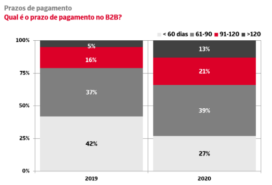 Segundo este estudo, no qual participaram mais de 300 gestores de empresas de todas as dimensões e setores, 13% trabalha com mais de 120 dias, uma taxa que praticamente triplica a de 2019. Apenas 27% das empresas opera com os prazos inferiores aos 60 dias contemplados no Decreto-Lei n.º 62/2013 de transposição da Diretiva Europeia de medidas de luta contra os atrasos de pagamento nas transações comerciais. Há um ano, praticamente metade do tecido empresarial (42%) trabalhava com menos de 60 dias.