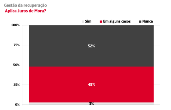 Quando se iniciam ações de cobrança, a imensa maioria das empresas renuncia à cobrança de juros de mora. 52% das empresas nunca os aplica e apenas 3% é sistemático na hora de exercer os seus direitos. De facto, segundo o Estudo elaborado pela Crédito y Caución e Iberinform, entre as empresas que aplicam juros de mora, 98% reclama valores inferiores aos que lhe corresponderiam legalmente.