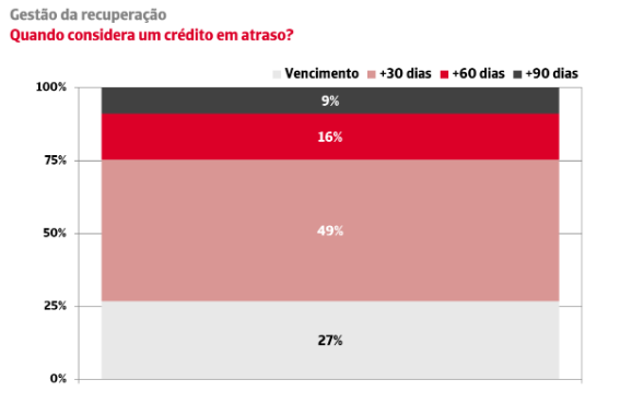 O atraso nas ações de cobrança de pagamentos implica uma deterioração na efetividade dessas ações. Apesar disso, o estudo reflete uma grande flexibilidade nos prazos de cobrança, como parte da relação comercial; 25% das empresas permite aos seus clientes atrasos de pagamento superiores a 60 dias antes de considerar que se trata de uma crédito em atraso.